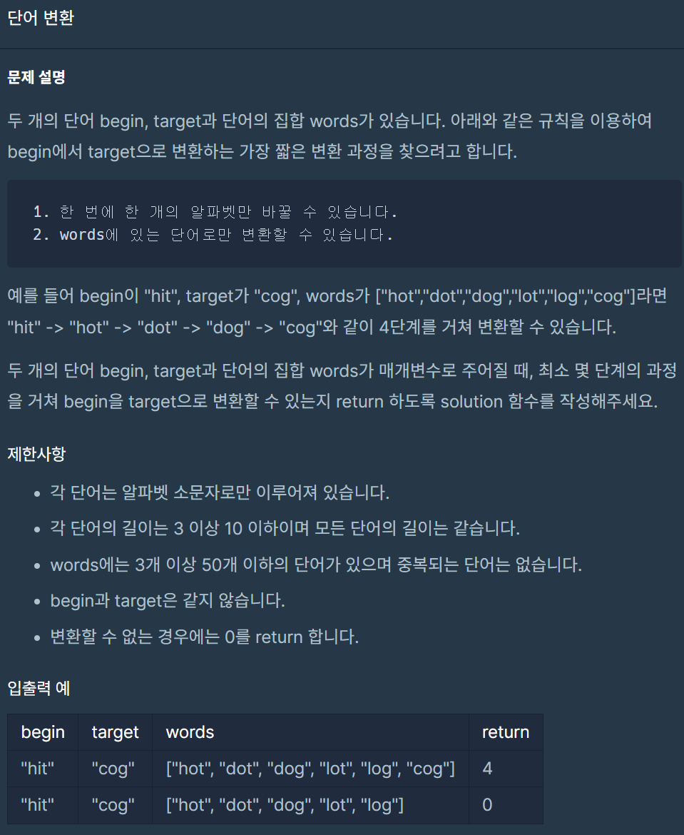 [프로그래머스] 단어 변환